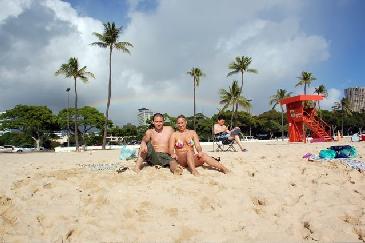 Dimitris Xygalatas and Erica Harris catch a little beach time in between snorkeling and hang gliding!