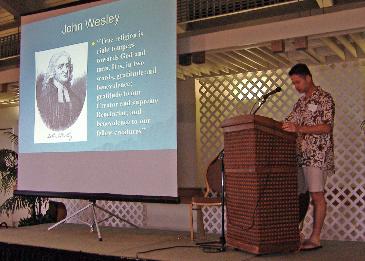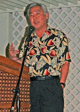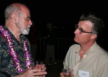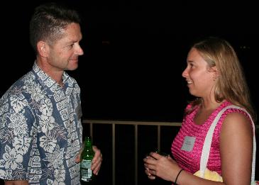 Conference Participants and families enjoy the Aloha Buffet Dinner poolside while Cheryl Genet coordinates the next days Wild Side Dolphin Charter