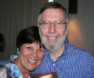 Bob Emmons and Erica Harris share camaraderie on the Terrace Room terrace...